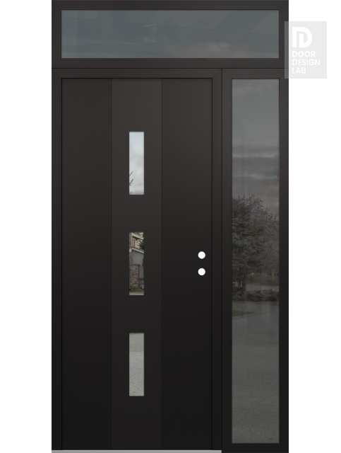 Modern Steel Front Door DIAMOND A7 52" X 96" BLACK/BLACK CLEAR GLASS PANEL BLACK RHI WITH SIDELITE AND TRANSOM MIRRORED GLASS