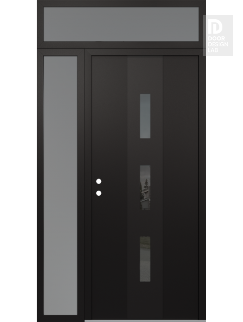 Modern Steel Front Door DIAMOND A7 52" X 96" BLACK/BLACK MIRRORED GLASS PANEL BLACK LHI WITH SIDELITE AND TRANSOM FROSTED GLASS