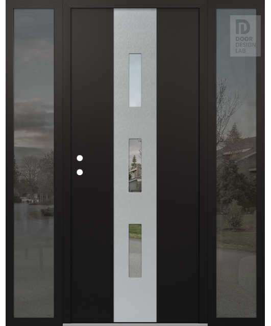 Modern Steel Front Door DIAMOND A7 60" X 80" BLACK/BLACK CLEAR GLASS PANEL STAINLESS STEEL LHI WITH 2 SIDELITES MIRRORED GLASS
