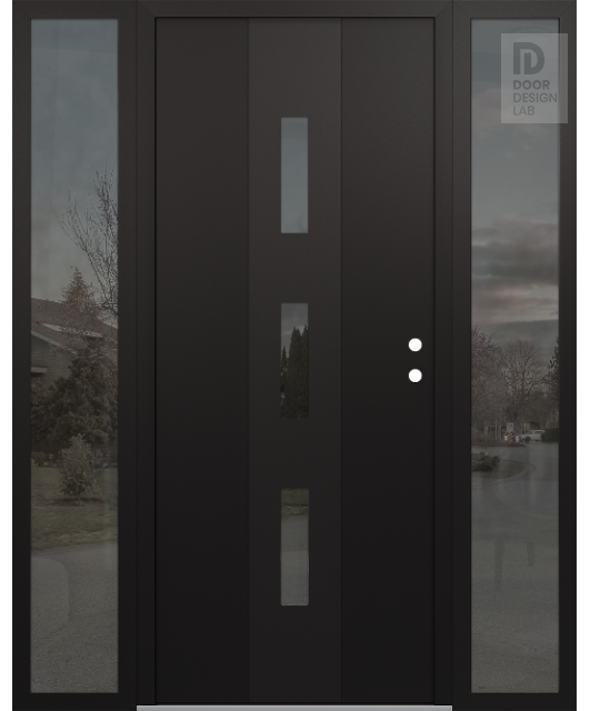 Modern Steel Front Door DIAMOND A7 60" X 80" BLACK/BLACK MIRRORED GLASS PANEL BLACK RHI WITH 2 SIDELITES MIRRORED GLASS