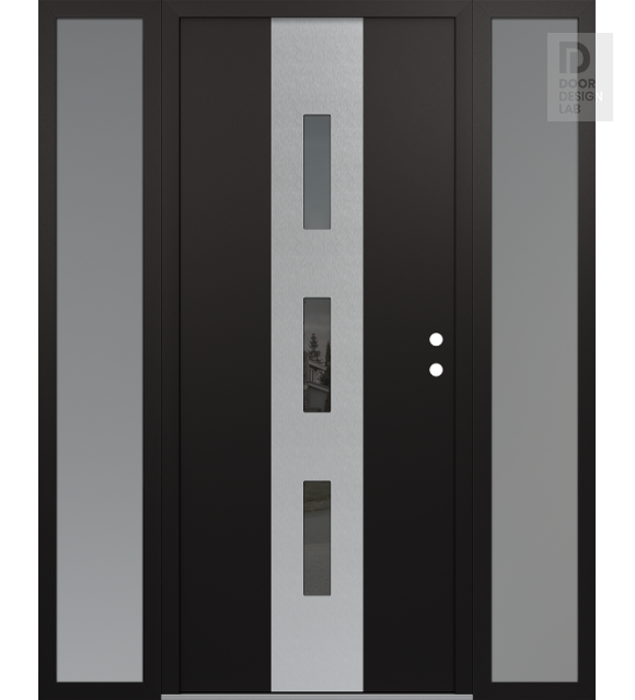 Modern Steel Front Door DIAMOND A7 60" X 80" BLACK/BLACK MIRRORED GLASS PANEL STAINLESS STEEL RHI WITH 2 SIDELITES FROSTED GLASS