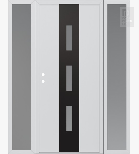 Modern Steel Front Door DIAMOND A7 60" X 80" BLACK/WHITE FROSTED GLASS PANEL BLACK LHI WITH 2 SIDELITES FROSTED GLASS