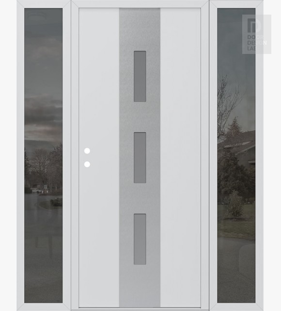 Modern Steel Front Door DIAMOND A7 60" X 80" BLACK/WHITE FROSTED GLASS PANEL STAINLESS STEEL LHI WITH 2 SIDELITES MIRRORED GLASS