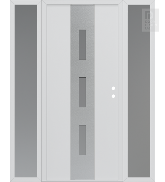 Modern Steel Front Door DIAMOND A7 60" X 80" BLACK/WHITE FROSTED GLASS PANEL STAINLESS STEEL RHI WITH 2 SIDELITES FROSTED GLASS