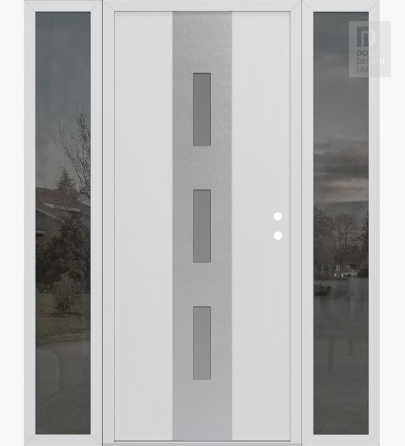 Modern Steel Front Door DIAMOND A7 60" X 80" BLACK/WHITE FROSTED GLASS PANEL STAINLESS STEEL RHI WITH 2 SIDELITES MIRRORED GLASS