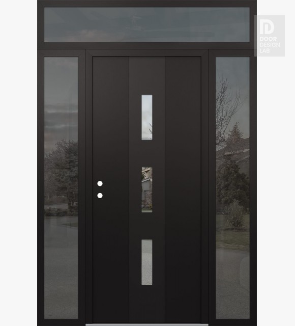Modern Steel Front Door DIAMOND A7 60" X 96" BLACK/BLACK CLEAR GLASS PANEL BLACK LHI WITH 2 SIDELITES AND TRANSOM MIRRORED GLASS