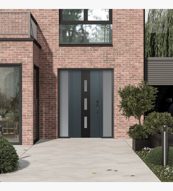 Modern Steel Front Door DIAMOND A7 64" X 80" ANTHRACITE/ANTHRACITE FROSTED GLASS PANEL BLACK LHI WITH 2 SIDELITES FROSTED GLASS
