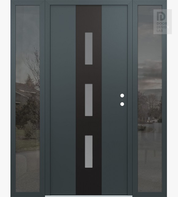 Modern Steel Front Door DIAMOND A7 64" X 80" ANTHRACITE/ANTHRACITE FROSTED GLASS PANEL BLACK RHI WITH 2 SIDELITES MIRRORED GLASS