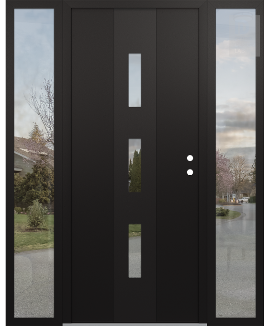 Modern Steel Front Door DIAMOND A7 64" X 80" BLACK/BLACK CLEAR GLASS PANEL BLACK RHI WITH 2 SIDELITES CLEAR GLASS