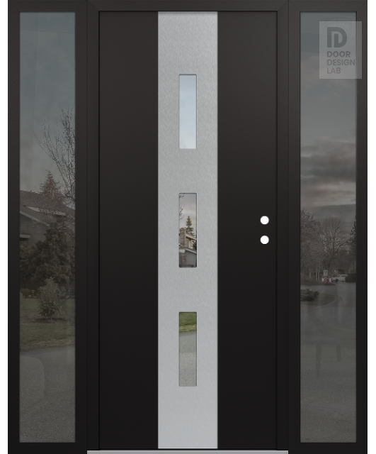 Modern Steel Front Door DIAMOND A7 64" X 80" BLACK/BLACK CLEAR GLASS PANEL STAINLESS STEEL RHI WITH 2 SIDELITES MIRRORED GLASS