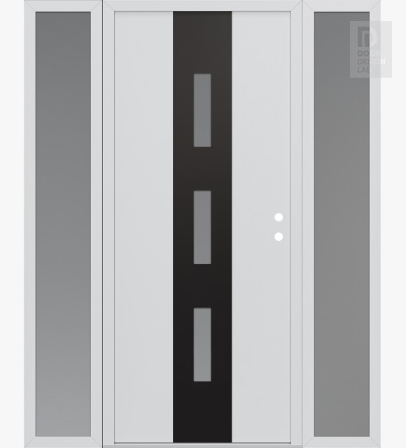 Modern Steel Front Door DIAMOND A7 64" X 80" BLACK/WHITE FROSTED GLASS PANEL BLACK RHI WITH 2 SIDELITES FROSTED GLASS