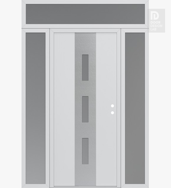 Modern Steel Front Door DIAMOND A7 64" X 96" BLACK/WHITE FROSTED GLASS PANEL STAINLESS STEEL RHI WITH 2 SIDELITES AND TRANSOM FROSTED GLASS