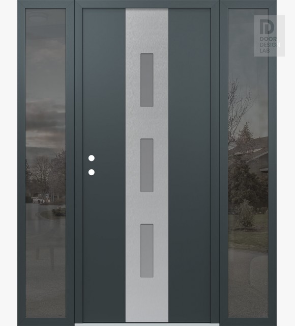 Modern Steel Front Door DIAMOND A7 68" X 80" ANTHRACITE/ANTHRACITE FROSTED GLASS PANEL STAINLESS STEEL LHI WITH 2 SIDELITES MIRRORED GLASS