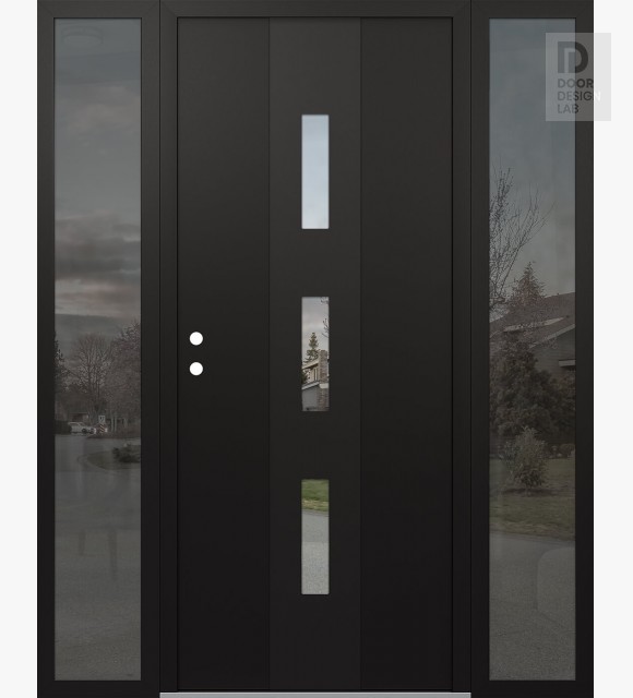 Modern Steel Front Door DIAMOND A7 68" X 80" BLACK/BLACK CLEAR GLASS PANEL BLACK LHI WITH 2 SIDELITES MIRRORED GLASS