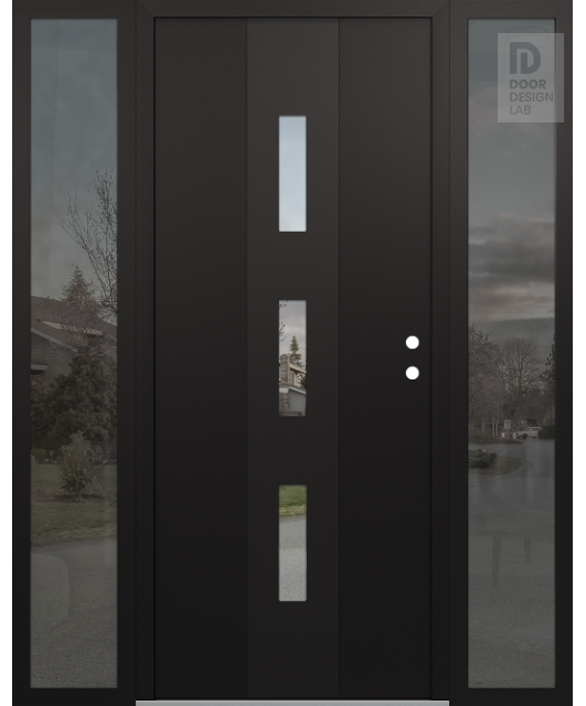 Modern Steel Front Door DIAMOND A7 68" X 80" BLACK/BLACK CLEAR GLASS PANEL BLACK RHI WITH 2 SIDELITES MIRRORED GLASS