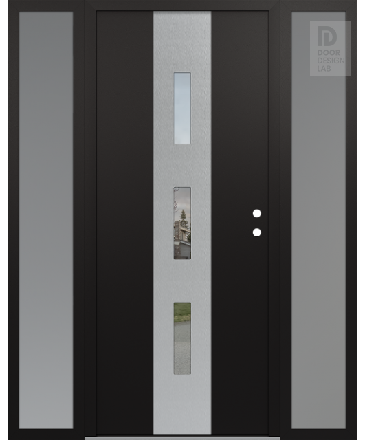 Modern Steel Front Door DIAMOND A7 68" X 80" BLACK/BLACK CLEAR GLASS PANEL STAINLESS STEEL RHI WITH 2 SIDELITES FROSTED GLASS