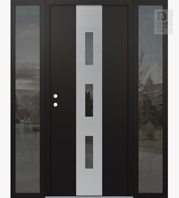 Modern Steel Front Door DIAMOND A7 68" X 80" BLACK/BLACK MIRRORED GLASS PANEL STAINLESS STEEL LHI WITH 2 SIDELITES MIRRORED GLASS