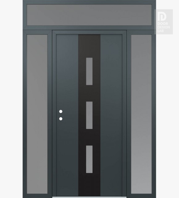 Modern Steel Front Door DIAMOND A7 68" X 96" ANTHRACITE/ANTHRACITE FROSTED GLASS PANEL BLACK LHI WITH 2 SIDELITES AND TRANSOM FROSTED GLASS