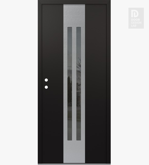 Modern Steel Front Door DIAMOND A8 36" X 80" BLACK/BLACK MIRRORED GLASS PANEL STAINLESS STEEL LHI