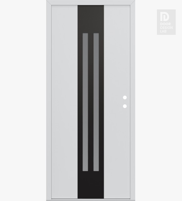 Modern Steel Front Door DIAMOND A8 36" X 80" BLACK/WHITE FROSTED GLASS PANEL BLACK RHI