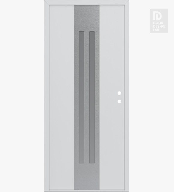 Modern Steel Front Door DIAMOND A8 36" X 80" BLACK/WHITE FROSTED GLASS PANEL STAINLESS STEEL RHI