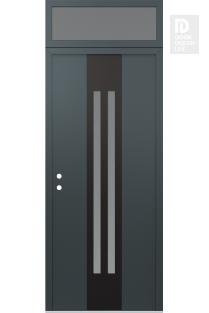 Modern Steel Front Door DIAMOND A8 36" X 96" ANTHRACITE/ANTHRACITE FROSTED GLASS PANEL BLACK LHI WITH TRANSOM FROSTED GLASS
