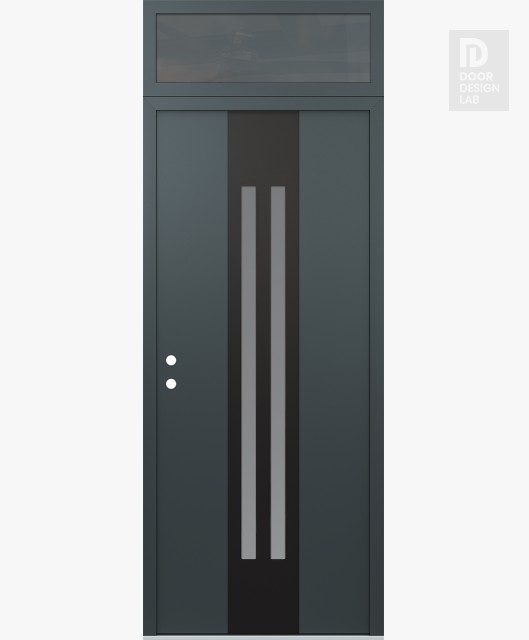 Modern Steel Front Door DIAMOND A8 36" X 96" ANTHRACITE/ANTHRACITE FROSTED GLASS PANEL BLACK LHI WITH TRANSOM MIRRORED GLASS