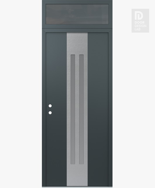 Modern Steel Front Door DIAMOND A8 36" X 96" ANTHRACITE/ANTHRACITE FROSTED GLASS PANEL STAINLESS STEEL LHI WITH TRANSOM MIRRORED GLASS