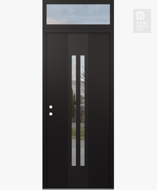 Modern Steel Front Door DIAMOND A8 36" X 96" BLACK/BLACK CLEAR GLASS PANEL BLACK LHI WITH TRANSOM CLEAR GLASS
