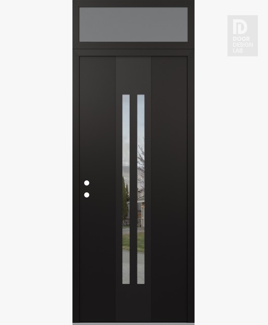 Modern Steel Front Door DIAMOND A8 36" X 96" BLACK/BLACK CLEAR GLASS PANEL BLACK LHI WITH TRANSOM FROSTED GLASS