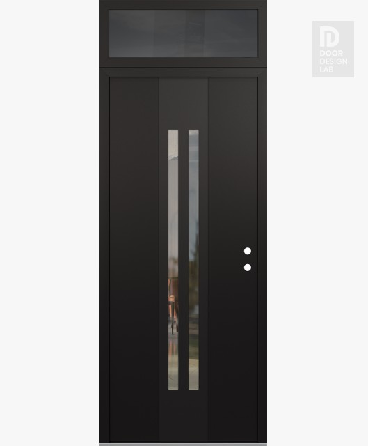 Modern Steel Front Door DIAMOND A8 36" X 96" BLACK/BLACK CLEAR GLASS PANEL BLACK LHI WITH TRANSOM MIRRORED GLASS