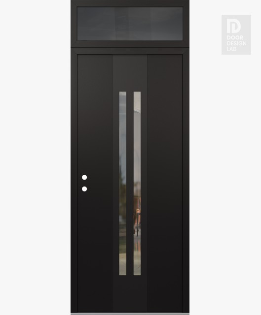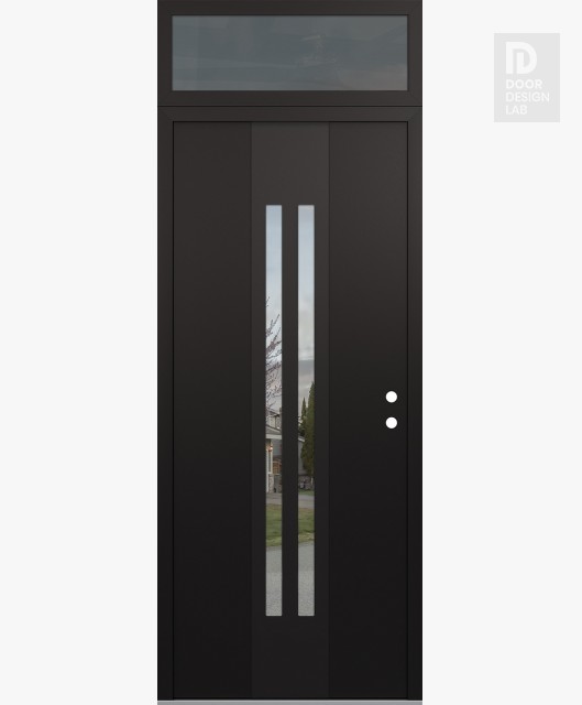 Modern Steel Front Door DIAMOND A8 36" X 96" BLACK/BLACK CLEAR GLASS PANEL BLACK RHI WITH TRANSOM MIRRORED GLASS