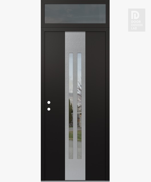 Modern Steel Front Door DIAMOND A8 36" X 96" BLACK/BLACK CLEAR GLASS PANEL STAINLESS STEEL LHI WITH TRANSOM MIRRORED GLASS