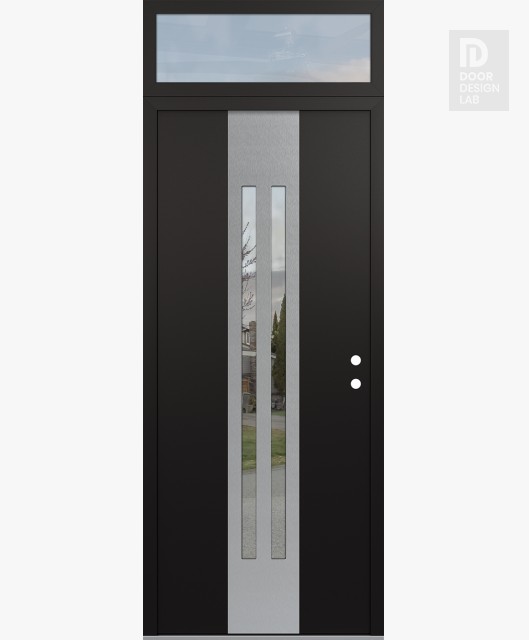 Modern Steel Front Door DIAMOND A8 36" X 96" BLACK/BLACK CLEAR GLASS PANEL STAINLESS STEEL RHI WITH TRANSOM CLEAR GLASS