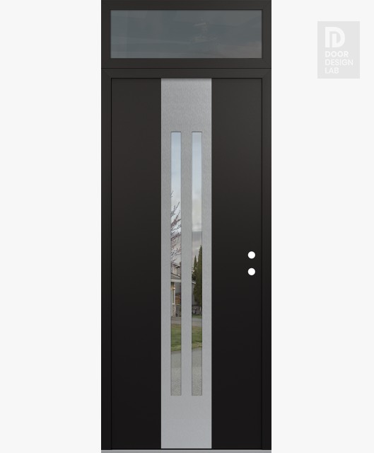 Modern Steel Front Door DIAMOND A8 36" X 96" BLACK/BLACK CLEAR GLASS PANEL STAINLESS STEEL RHI WITH TRANSOM MIRRORED GLASS