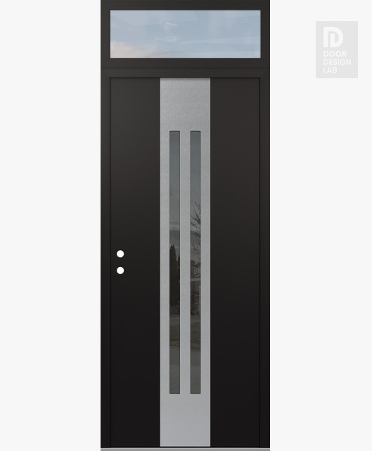 Modern Steel Front Door DIAMOND A8 36" X 96" BLACK/BLACK MIRRORED GLASS PANEL STAINLESS STEEL LHI WITH TRANSOM CLEAR GLASS