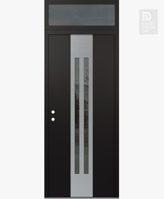 Modern Steel Front Door DIAMOND A8 36" X 96" BLACK/BLACK MIRRORED GLASS PANEL STAINLESS STEEL LHI WITH TRANSOM MIRRORED GLASS