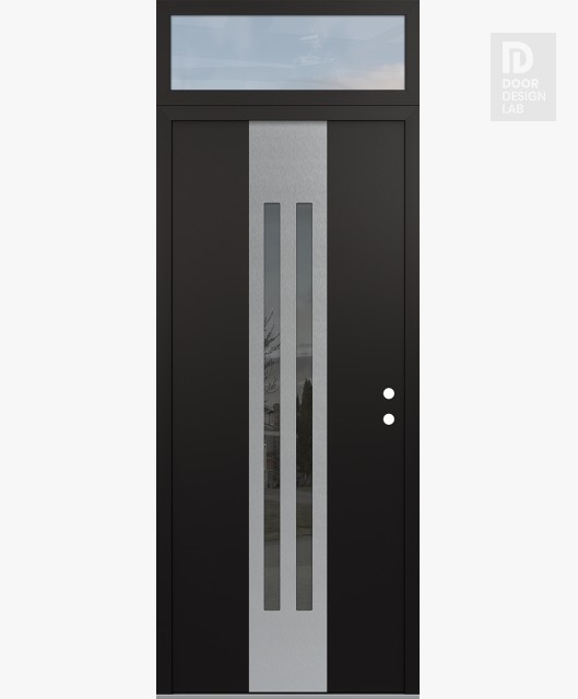 Modern Steel Front Door DIAMOND A8 36" X 96" BLACK/BLACK MIRRORED GLASS PANEL STAINLESS STEEL RHI WITH TRANSOM CLEAR GLASS