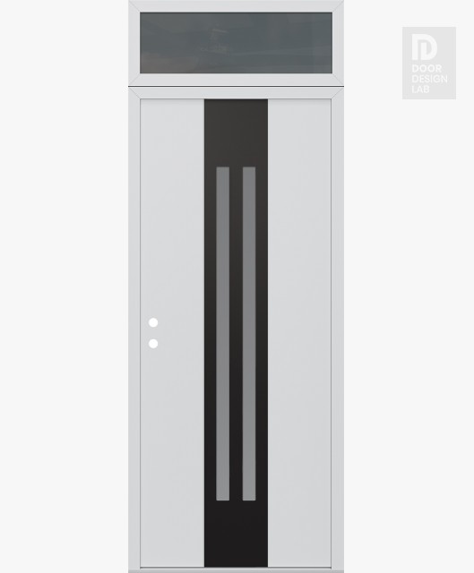 Modern Steel Front Door DIAMOND A8 36" X 96" BLACK/WHITE FROSTED GLASS PANEL BLACK LHI WITH TRANSOM MIRRORED GLASS