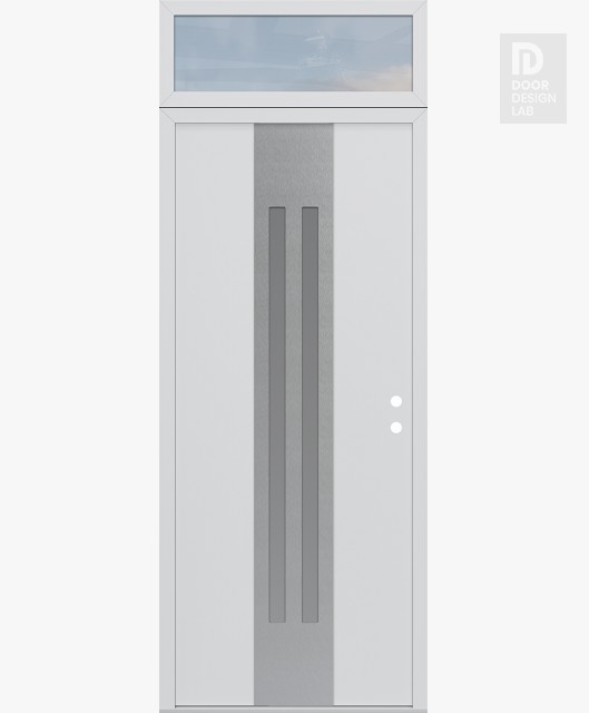 Modern Steel Front Door DIAMOND A8 36" X 96" BLACK/WHITE FROSTED GLASS PANEL STAINLESS STEEL RHI WITH TRANSOM CLEAR GLASS