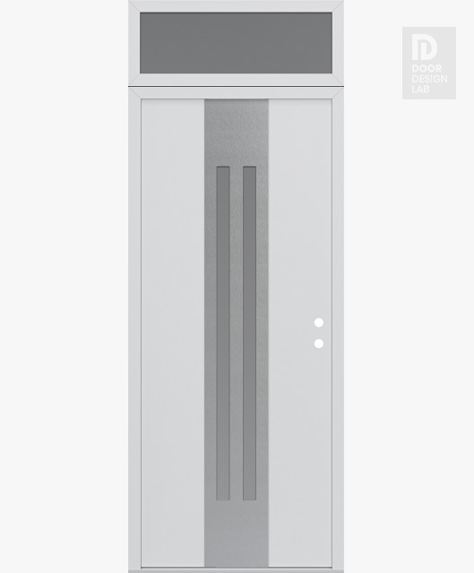Modern Steel Front Door DIAMOND A8 36" X 96" BLACK/WHITE FROSTED GLASS PANEL STAINLESS STEEL RHI WITH TRANSOM FROSTED GLASS