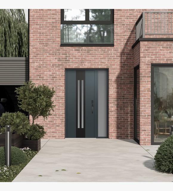 Modern Steel Front Door DIAMOND A8 48" X 80" ANTHRACITE/ANTHRACITE FROSTED GLASS PANEL BLACK LHI WITH SIDELITE FROSTED GLASS