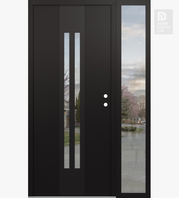 Modern Steel Front Door DIAMOND A8 48" X 80" BLACK/BLACK CLEAR GLASS PANEL BLACK RHI WITH SIDELITE CLEAR GLASS