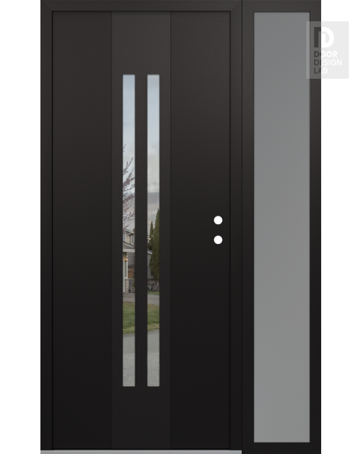 Modern Steel Front Door DIAMOND A8 48" X 80" BLACK/BLACK CLEAR GLASS PANEL BLACK RHI WITH SIDELITE FROSTED GLASS