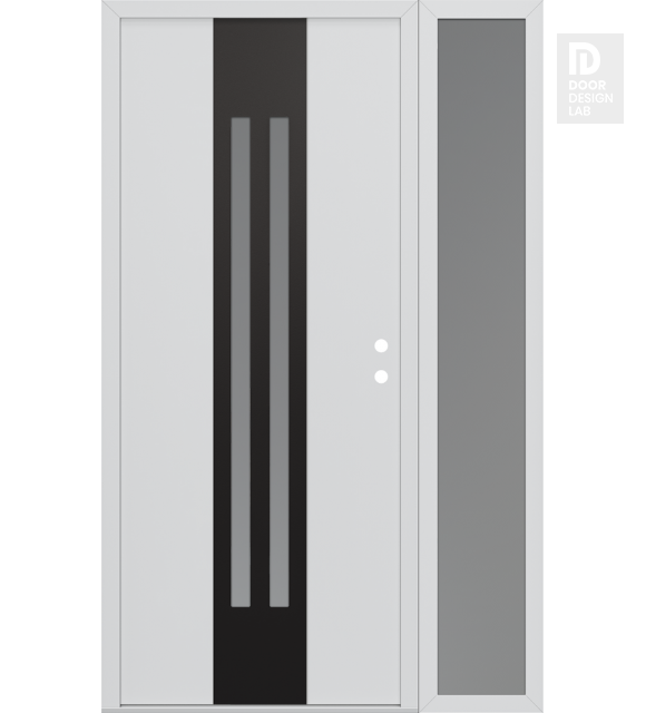 Modern Steel Front Door DIAMOND A8 48" X 80" BLACK/WHITE FROSTED GLASS PANEL BLACK RHI WITH SIDELITE FROSTED GLASS