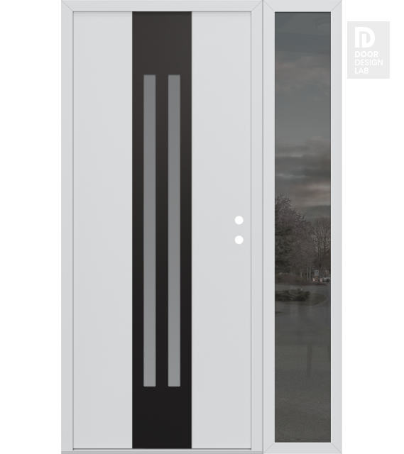 Modern Steel Front Door DIAMOND A8 48" X 80" BLACK/WHITE FROSTED GLASS PANEL BLACK RHI WITH SIDELITE MIRRORED GLASS