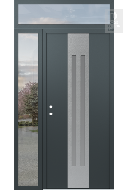 Modern Steel Front Door DIAMOND A8 48" X 96" ANTHRACITE/ANTHRACITE FROSTED GLASS PANEL STAINLESS STEEL LHI WITH SIDELITE AND TRANSOM CLEAR GLASS