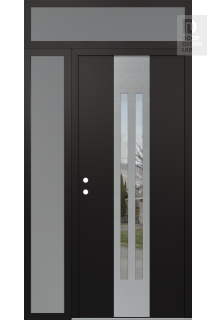 Modern Steel Front Door DIAMOND A8 48" X 96" BLACK/BLACK CLEAR GLASS PANEL STAINLESS STEEL LHI WITH SIDELITE AND TRANSOM FROSTED GLASS