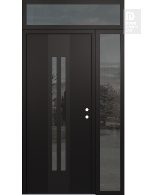 Modern Steel Front Door DIAMOND A8 48" X 96" BLACK/BLACK MIRRORED GLASS PANEL BLACK RHI WITH SIDELITE AND TRANSOM MIRRORED GLASS