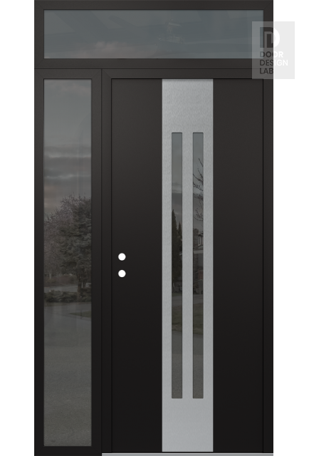 Modern Steel Front Door DIAMOND A8 48" X 96" BLACK/BLACK MIRRORED GLASS PANEL STAINLESS STEEL LHI WITH SIDELITE AND TRANSOM MIRRORED GLASS